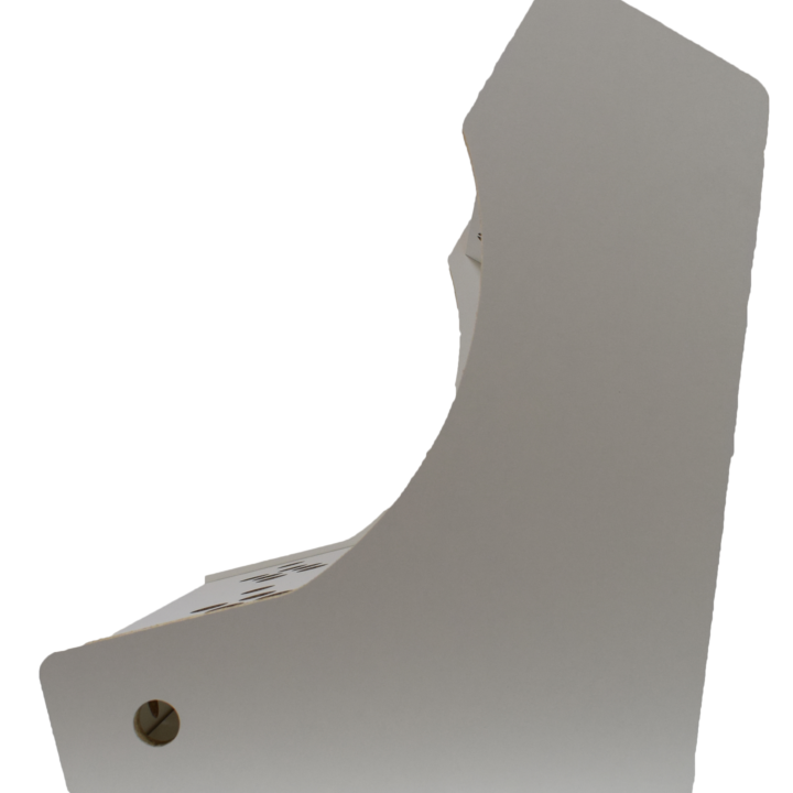 Fabriqué en mélaminé blanc givré de 19 mm d’épaisseur , usiné numériquement, cela assure la précision des découpes.