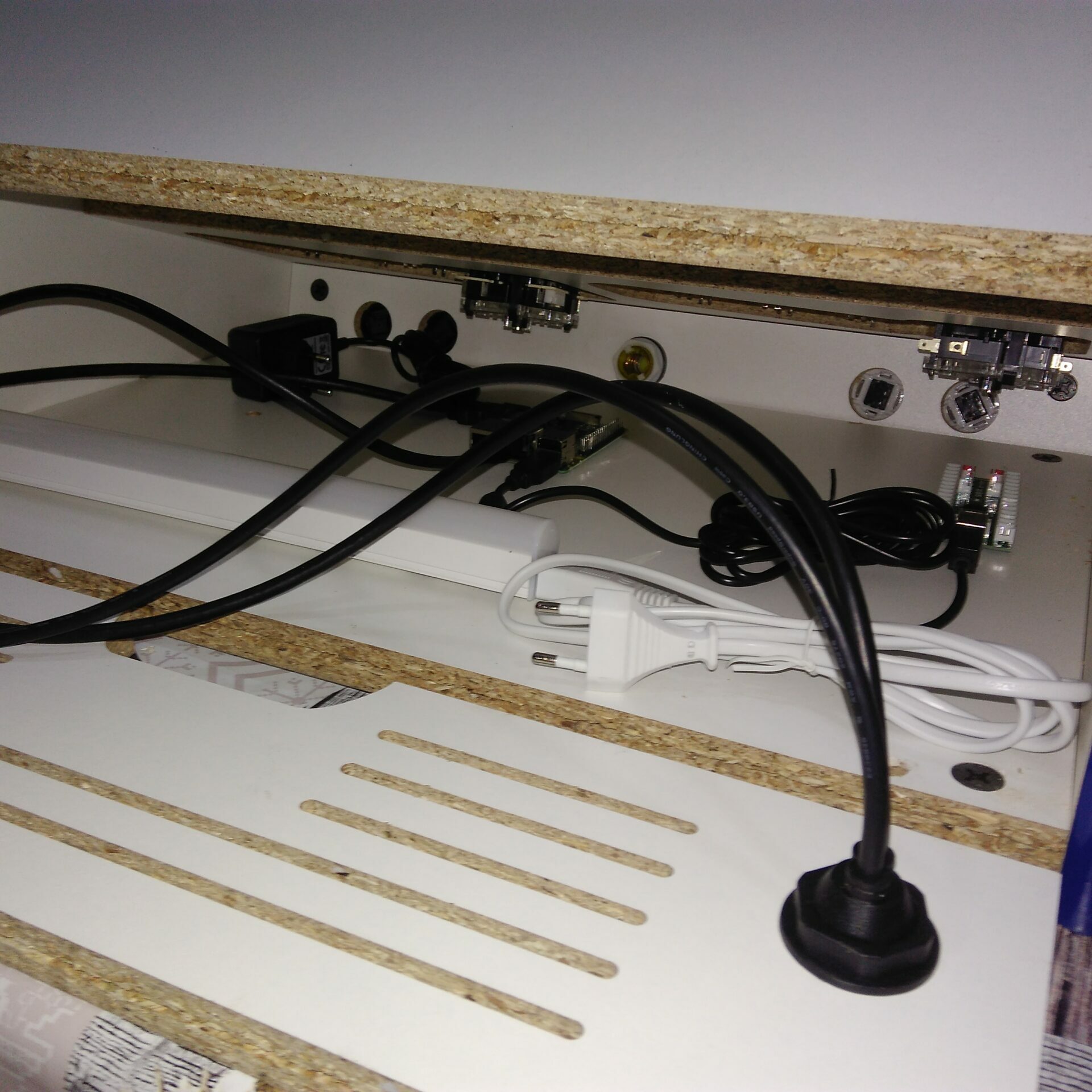 • Un interrupteur  On/off lumineux permettant de cabler directement à l’interieur une multiprise ou l’alimentation du PC /Raspberry , les bouton lumineux, un néon….